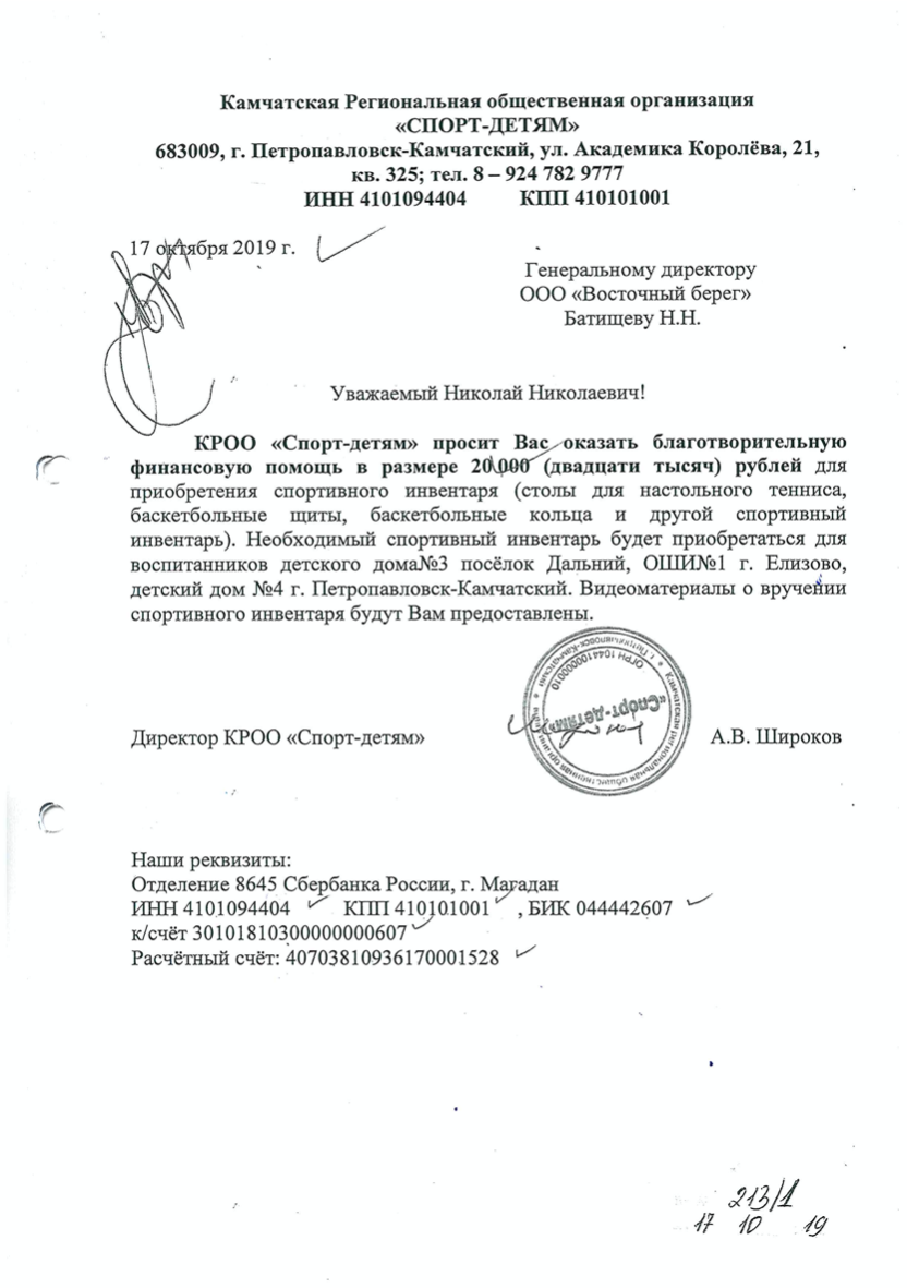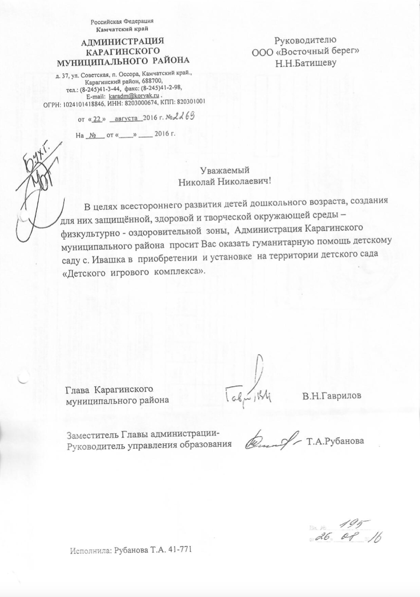 В 2000 году в рамках программы формирования первоначальных производственных мощностей в селе Ивашка Карагинского района нами был приобретён и модернизирован рыбоперерабатывающий завод мощностью 30 тонн готовой продукции в сутки.